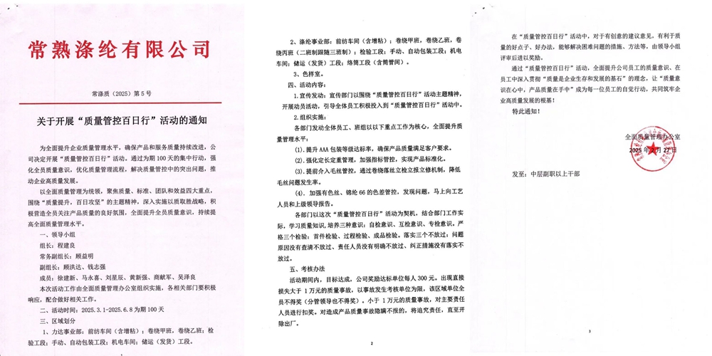 अध्यक्ष र महाप्रबन्धक चेंग जुलियाले काम तैनात गर्न धेरै बैठकहरू राखेका छन्, "गुणस्तर नियन्त्रण सयौं डे यात्रा" गतिविधि कार्यान्वयन गर्नको लागि गुणस्तर कार्यालय र दुई व्यवसायिक इकाईहरूको आवश्यक पर्दछ, "गुणस्तर नियन्त्रण सयौं टूर" गतिविधिहरू राख्दछन्।